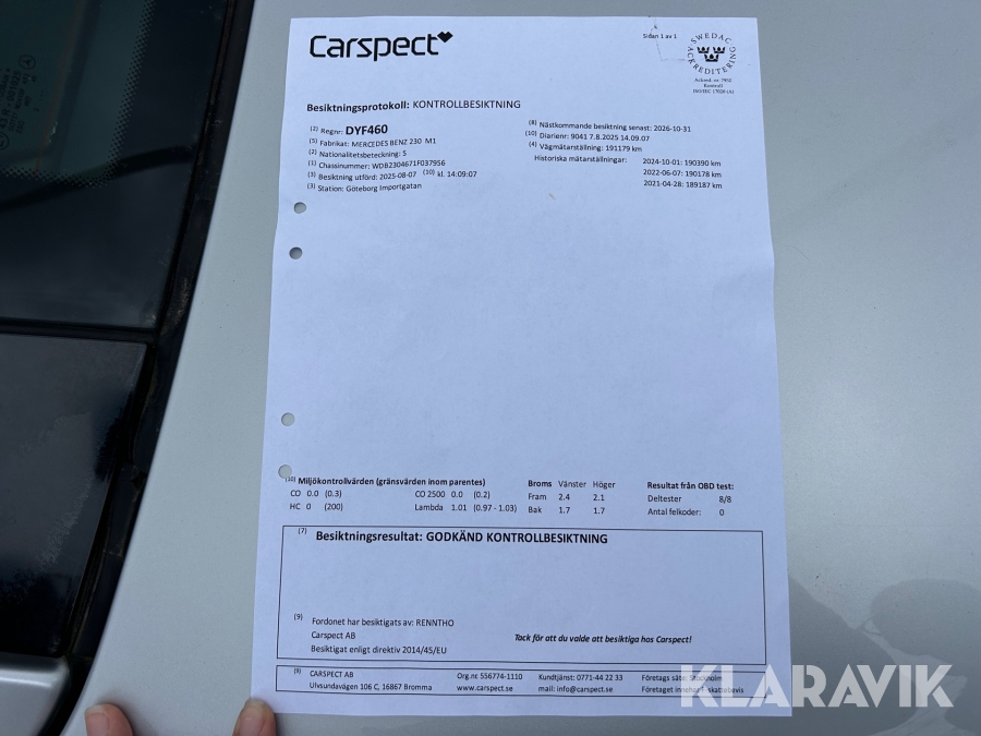 • Serie/chassinummer framgår