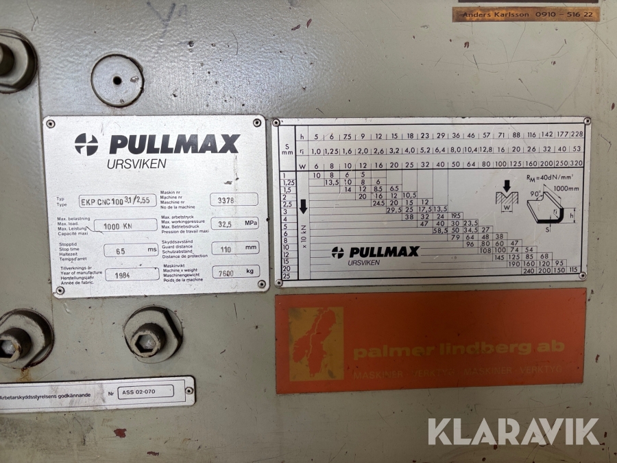 Kantpress Pullmax Ursviken EKP CNC 100 3,1/2,55