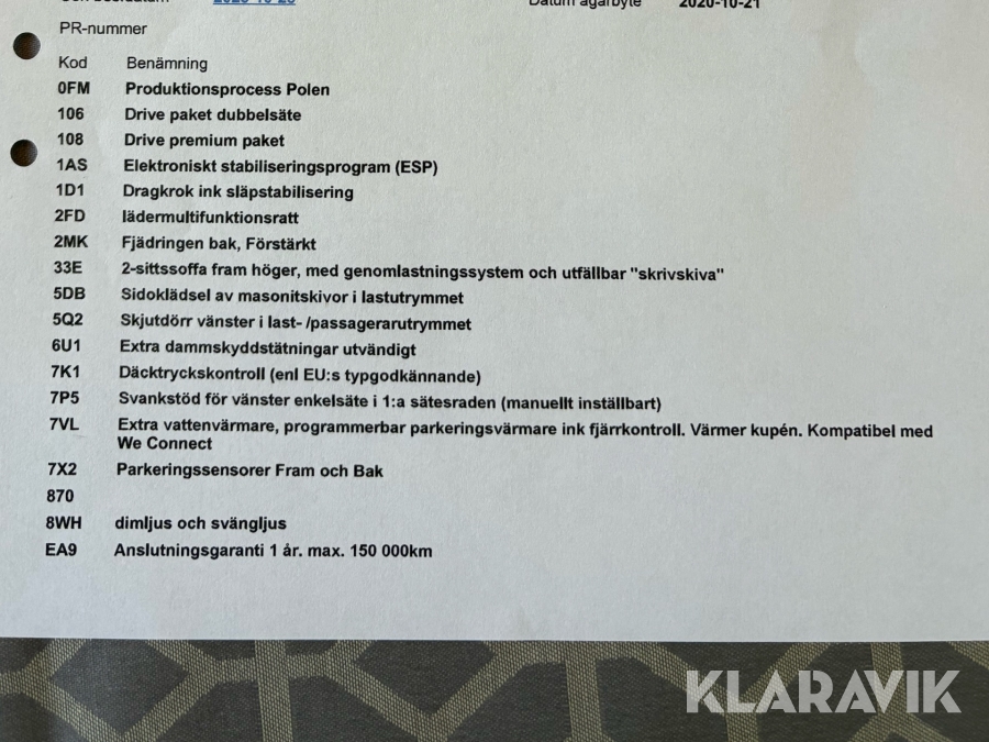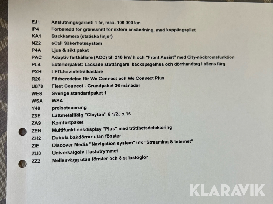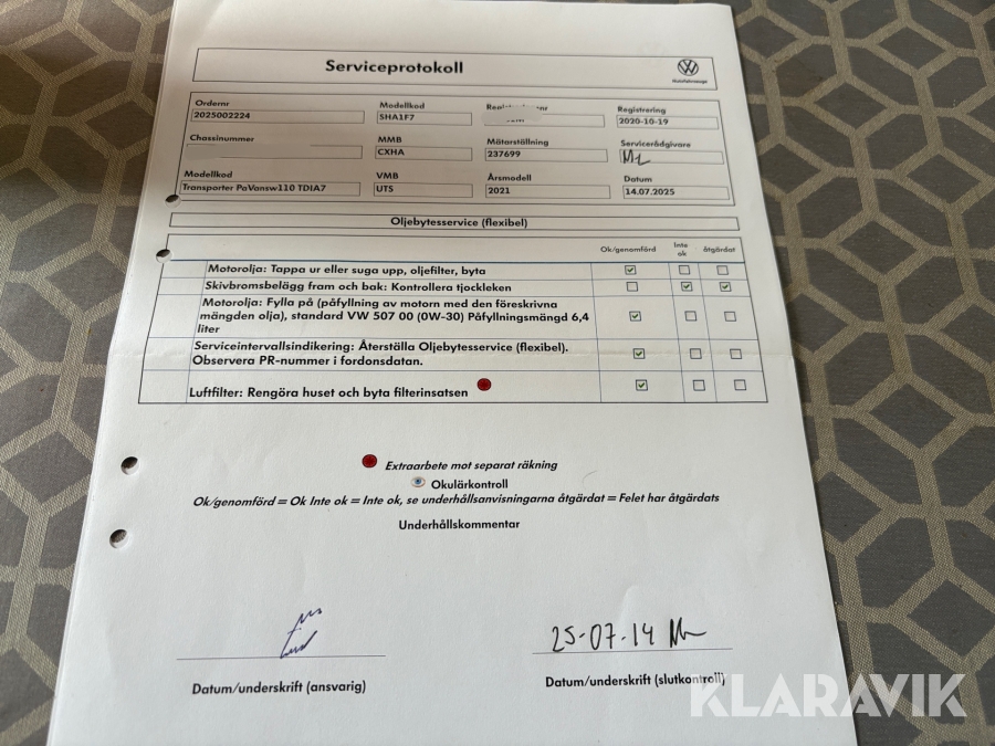 • Serie/chassinummer framgår