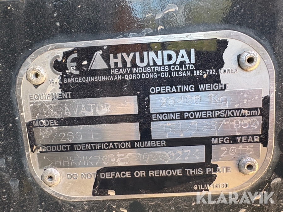 Grävmaskin Hyundai HX260 L