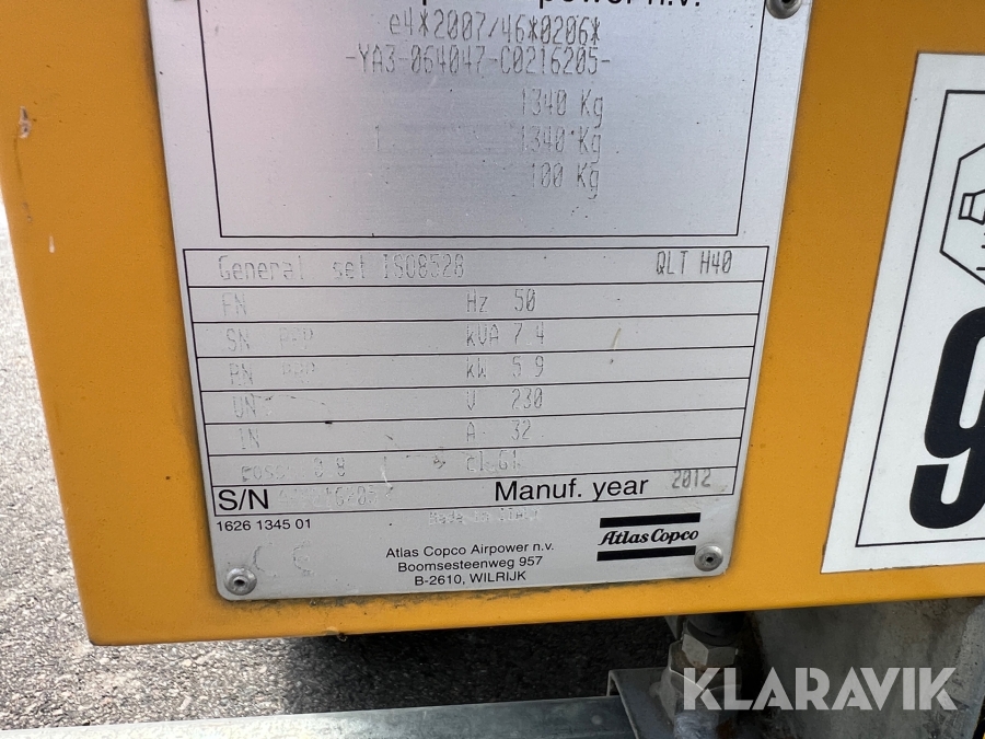 Belysningsmast dieselgenerator 10m Atlas Copco QLT H40