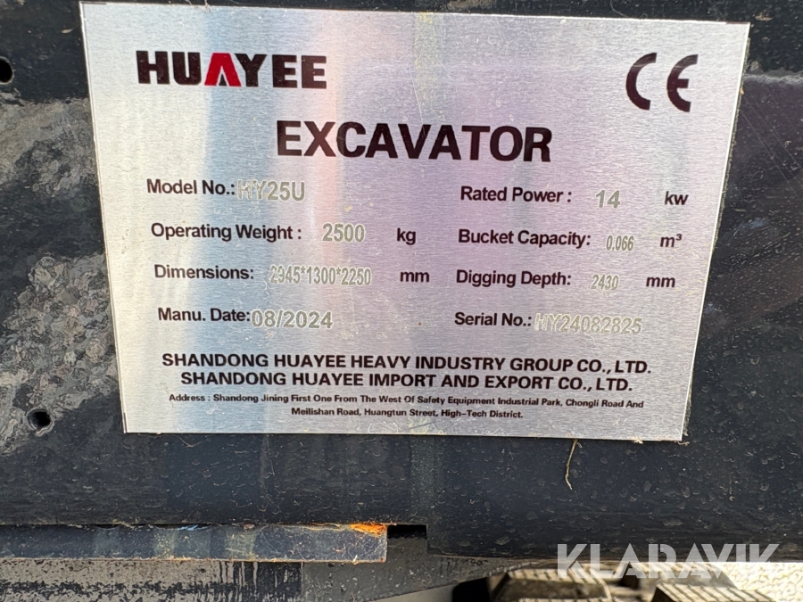 Grävmaskin Huayee HY25U med 9 olika skopor och redskap