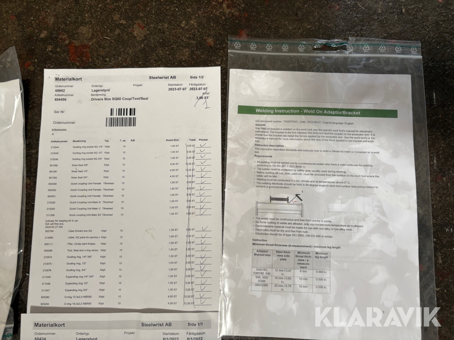 Boka frakt? Det finns ingen specifik information om frakt för just det här objektet, men om du skickar oss en förfrågan via vårt fraktformulär, så undersöker vi möjligheten. Paket, EU-pall eller större maskin? Klaravik har fraktavtal med Schenker och i de fall vi kan hjälpa till med frakt gäller det objekt som ryms i paket eller inom en EU-pall (upp till 120*80 cm och 990 kg). Det går att beställa frakt inom Sverige, dock inte till utlandet. Vid frakt på större maskiner rekommenderar vi gärna transportföretag som du kan kontakta.