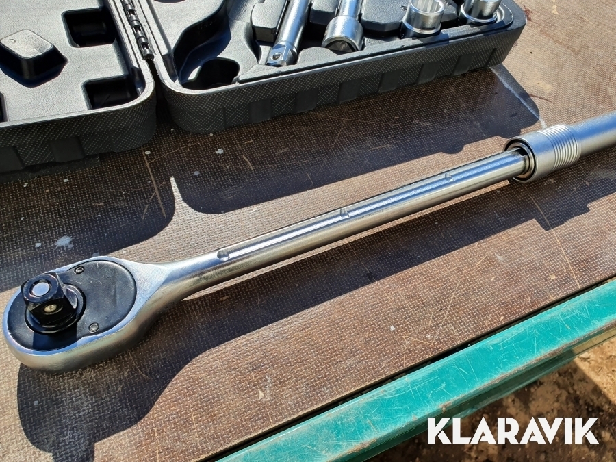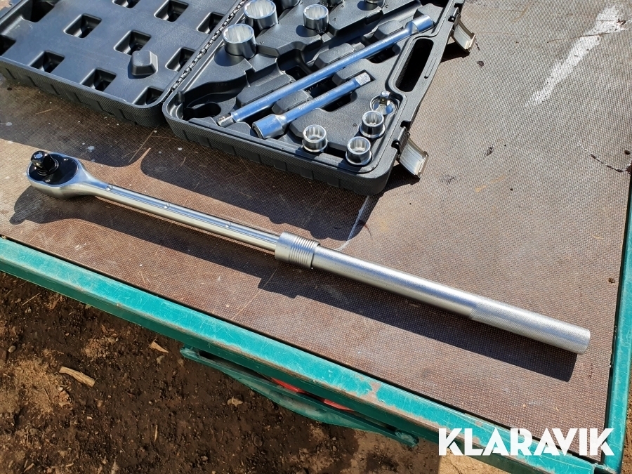 Kraftig hylsnyckelsats i bärbar låda.