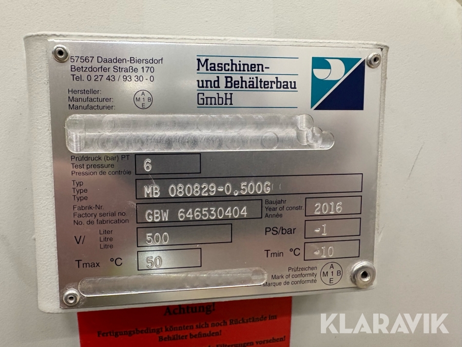 Vakuumtank Maschinen und Behälterbau MB 080829-0.500