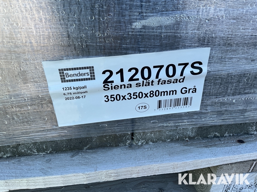 Betongmarkplatta 15st pallar Benders Siena Slät Fasad 350x350x80mm Grå