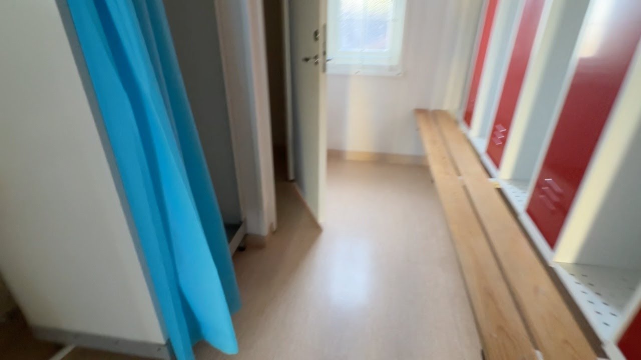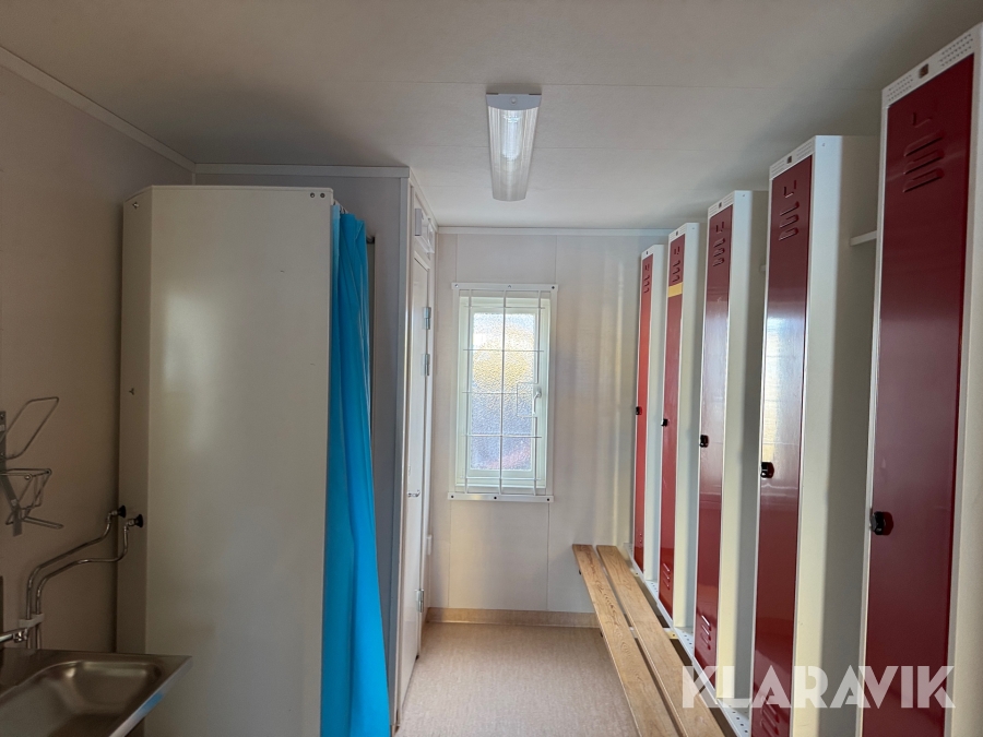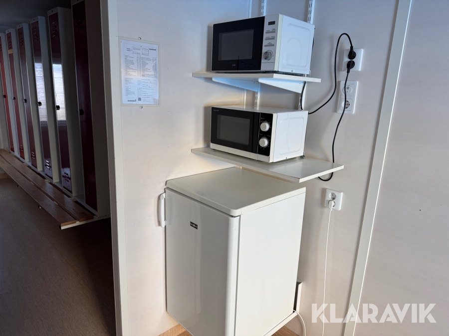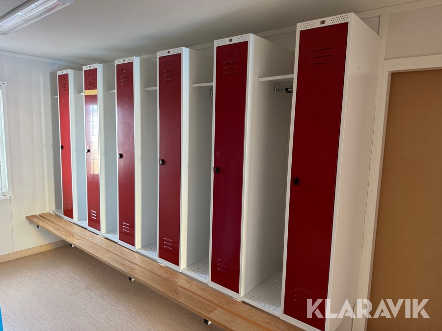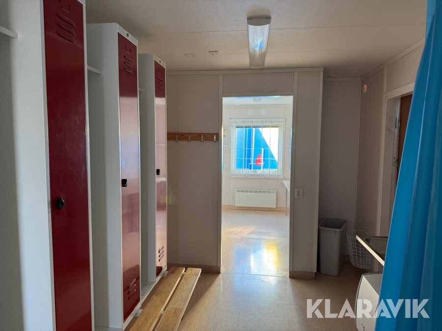 Mat och omklädningsplats för sex personer.