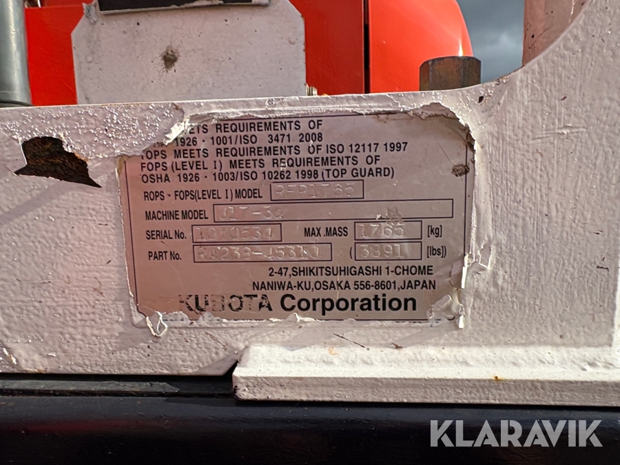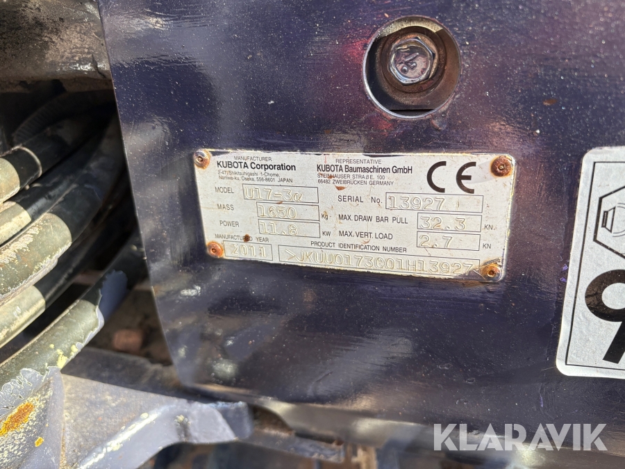 Grävmaskin Kubota U17-3a med hydraulisk planeringsskopa och 2 st skopor