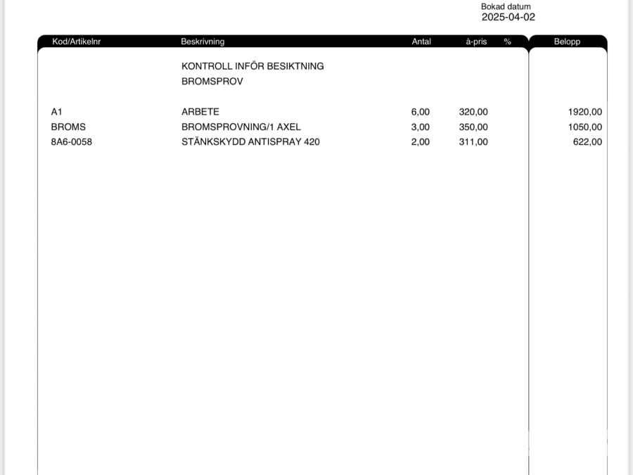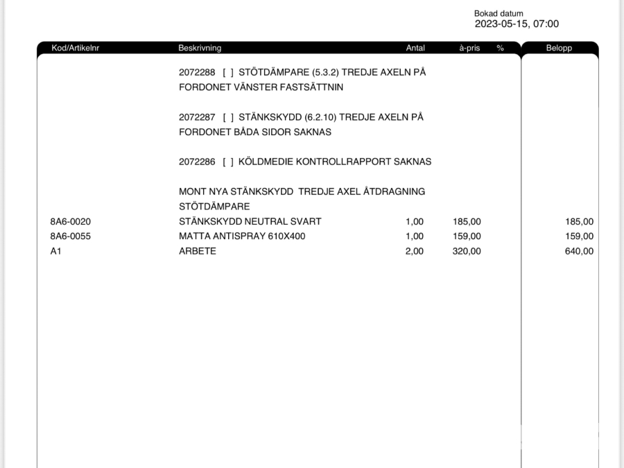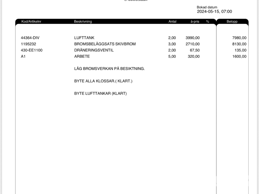 • Serie/chassinummer framgår