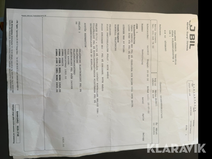 Du som köpare är skyldig att kontrollera objektet vid hämtning. Skiljer sig något avsevärt jämfört med informationen på klaravik.se? Kontakta då Klaravik innan du tar objektet från platsen. Läs fullständiga köpvillkor.