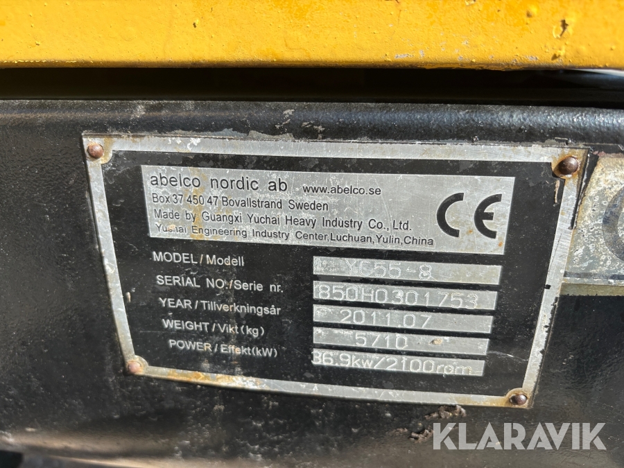 Grävmaskin Abelco YC55-8 med tiltrotator och 3st skopor