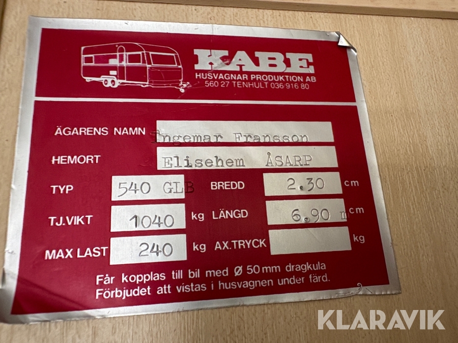 Du som köpare är skyldig att kontrollera objektet vid hämtning. Skiljer sig något avsevärt jämfört med informationen på klaravik.se? Kontakta då Klaravik innan du tar objektet från platsen. Läs fullständiga köpvillkor.
