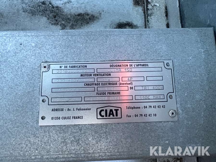 Tilluftsaggregat med värme CIAT Clima 150