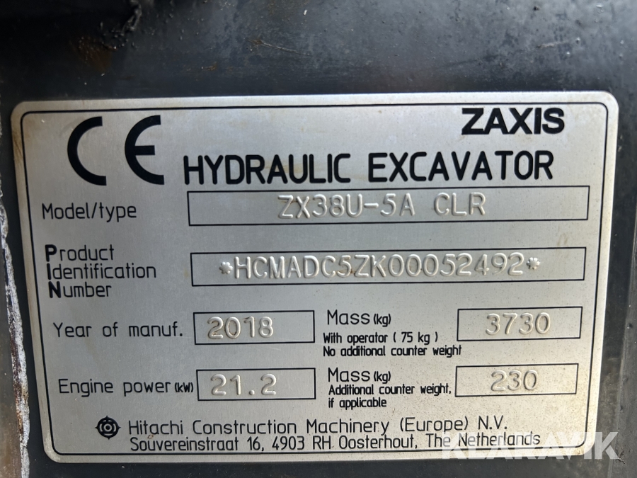 Minigrävmaskin Hitachi ZX38U-5A