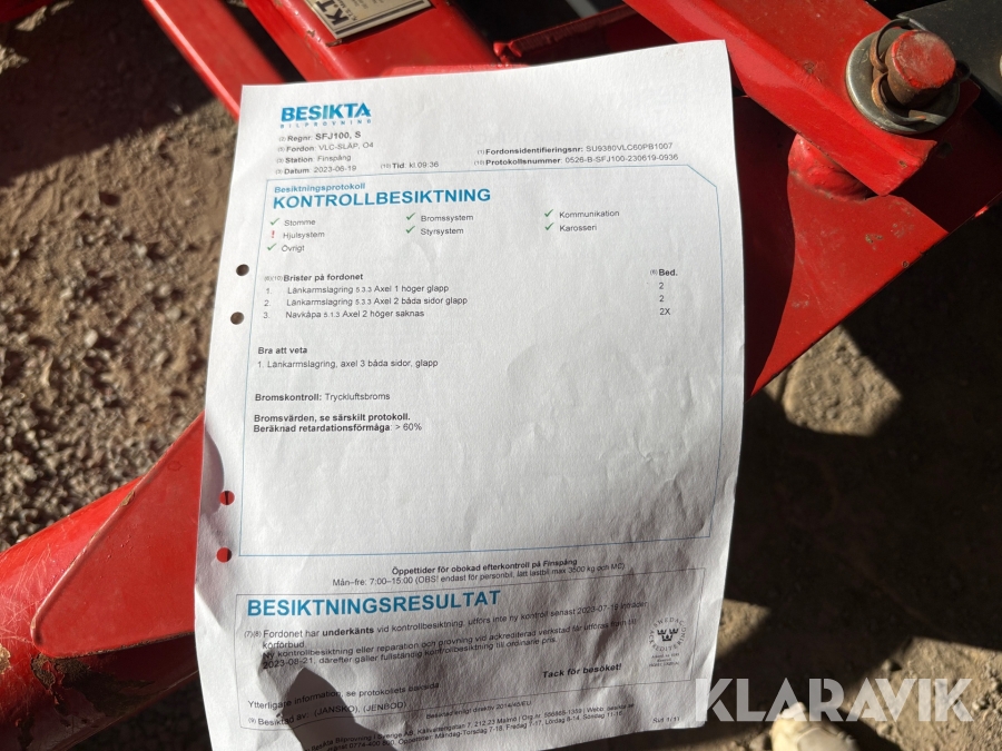 Du som köpare är skyldig att kontrollera objektet vid hämtning. Skiljer sig något avsevärt jämfört med informationen på klaravik.se? Kontakta då Klaravik innan du tar objektet från platsen. Läs fullständiga köpvillkor.