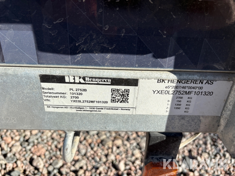 Personbilssläp BK Hengeren PL2752B med kåpa