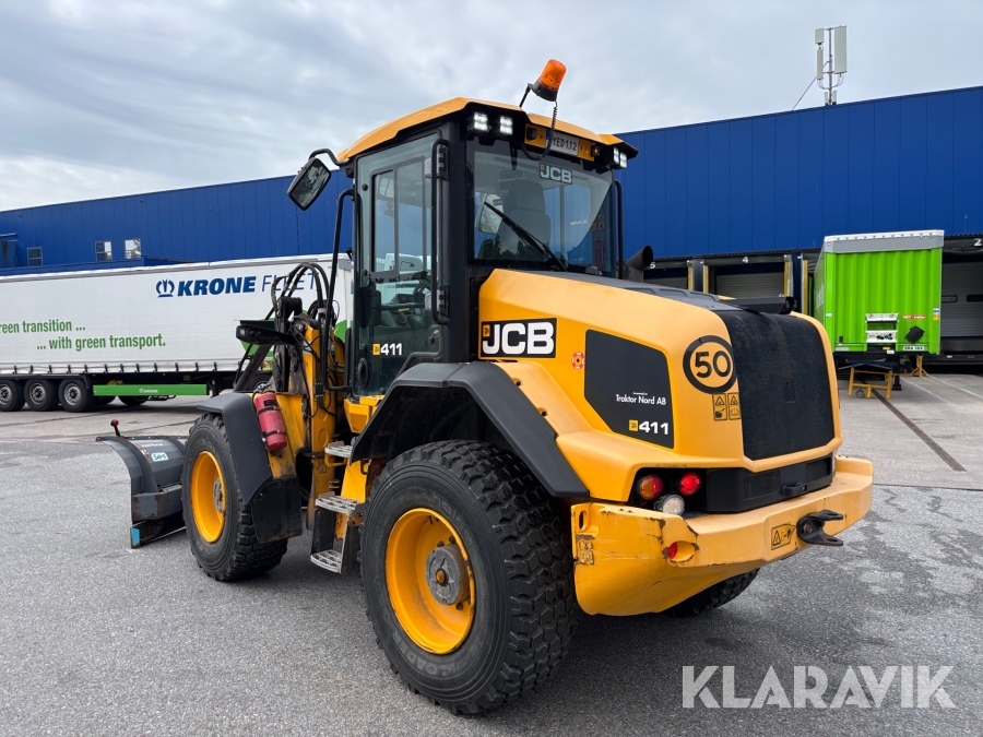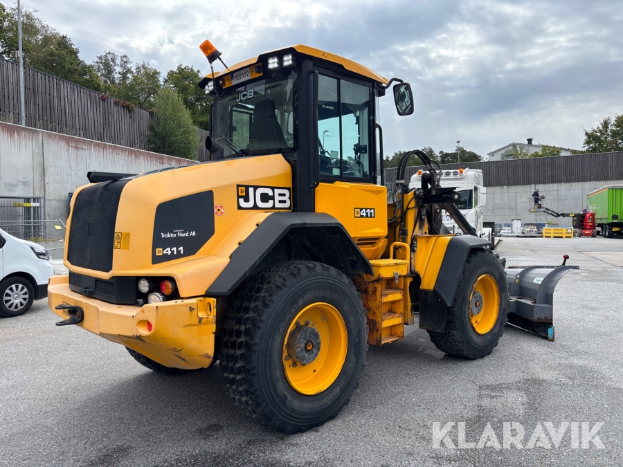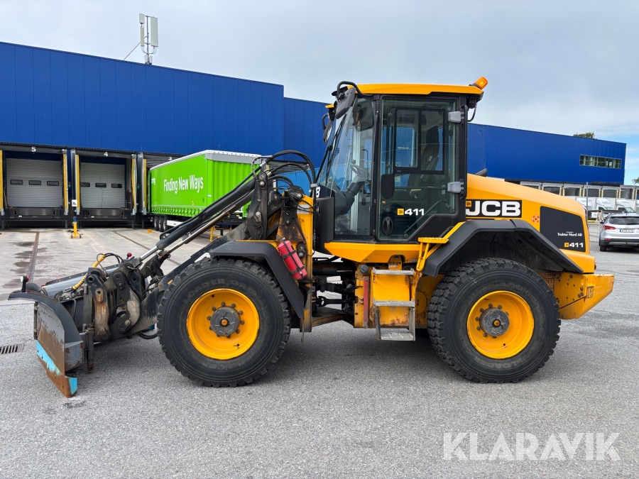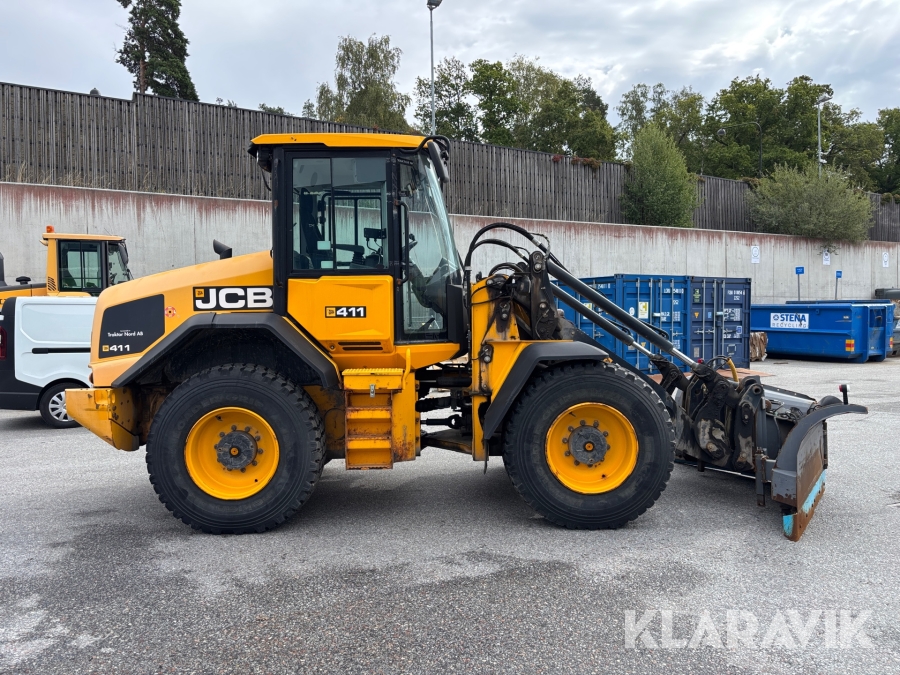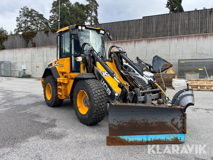 Hjullastare JCB 411 med vikplog & sandspridare