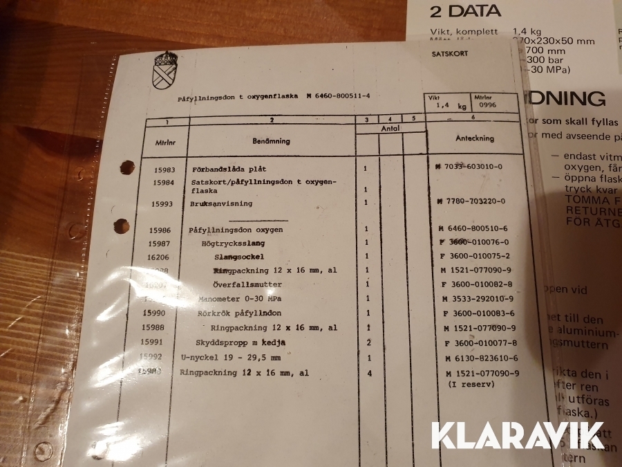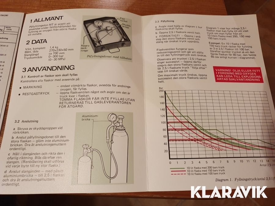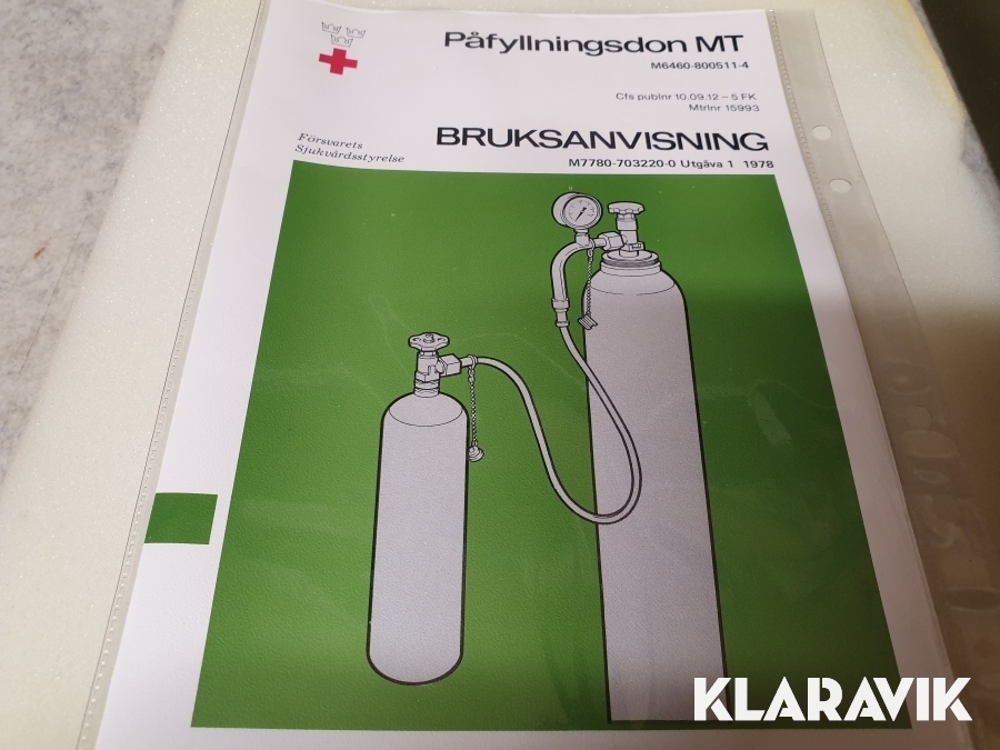 Påfyllningsdonet förvaras i plåtlåda. Det har tidigare tillhört svenska försvaret, men legat oanvänt i förråd. Bruksanvisning medföljer.