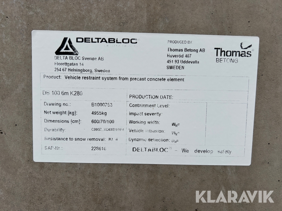 Boka frakt? Det finns ingen specifik information om frakt för just det här objektet, men om du skickar oss en förfrågan via vårt fraktformulär, så undersöker vi möjligheten. Paket, EU-pall eller större maskin? Klaravik har fraktavtal med Schenker och i de fall vi kan hjälpa till med frakt gäller det objekt som ryms i paket eller inom en EU-pall (upp till 120*80 cm och 990 kg). Det går att beställa frakt inom Sverige, dock inte till utlandet. Vid frakt på större maskiner rekommenderar vi gärna transportföretag som du kan kontakta.