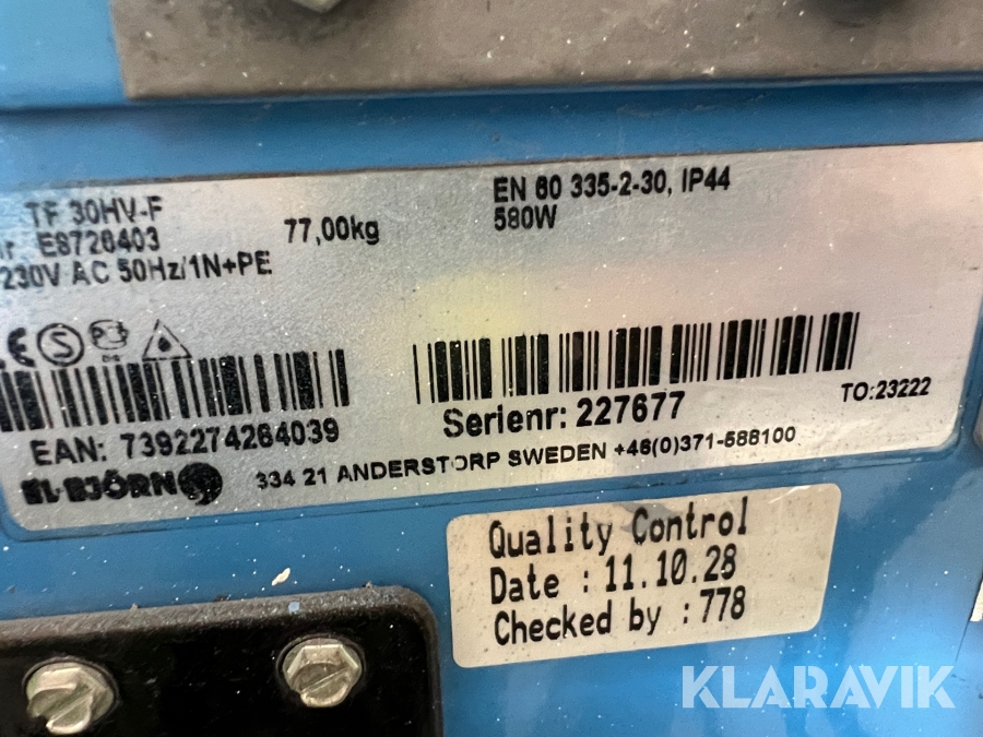 Du som köpare är skyldig att kontrollera objektet vid hämtning. Skiljer sig något avsevärt jämfört med informationen på klaravik.se? Kontakta då Klaravik innan du tar objektet från platsen. Läs fullständiga köpvillkor.