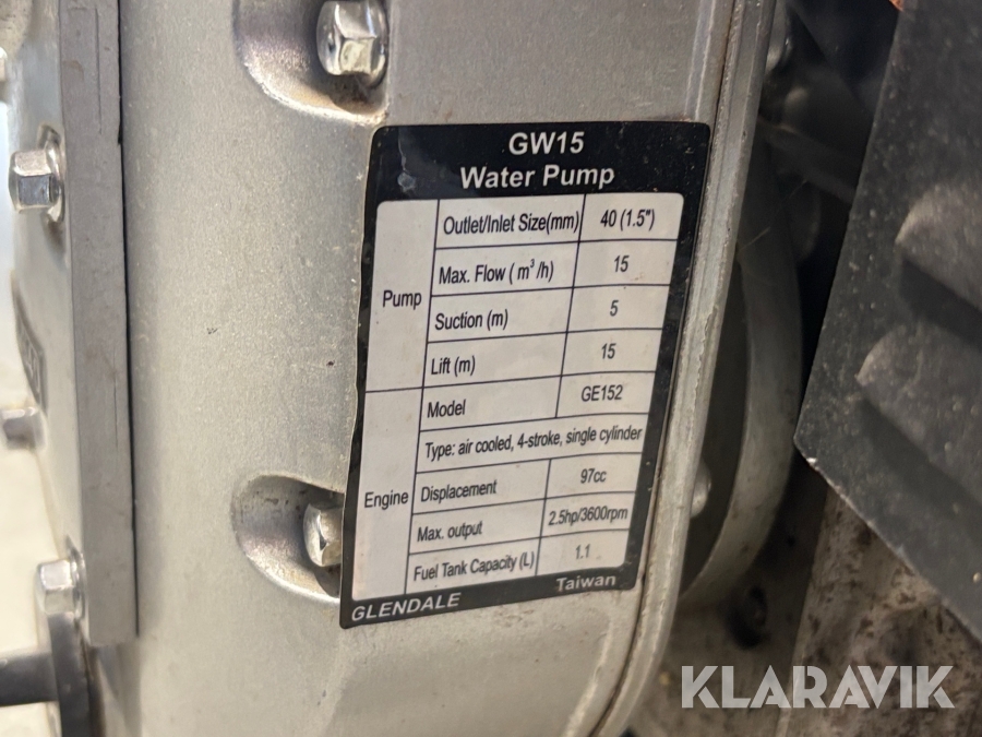 Vattenpump Glendale GW15 bensin