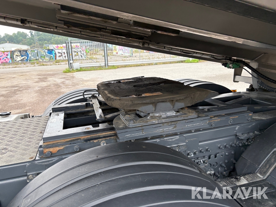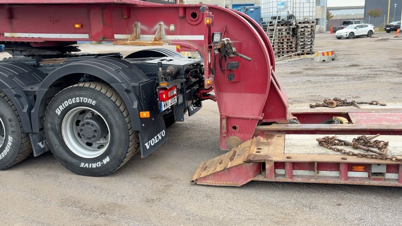 Dragbil Volvo FH 12 540 med tippflak och maskintrailer