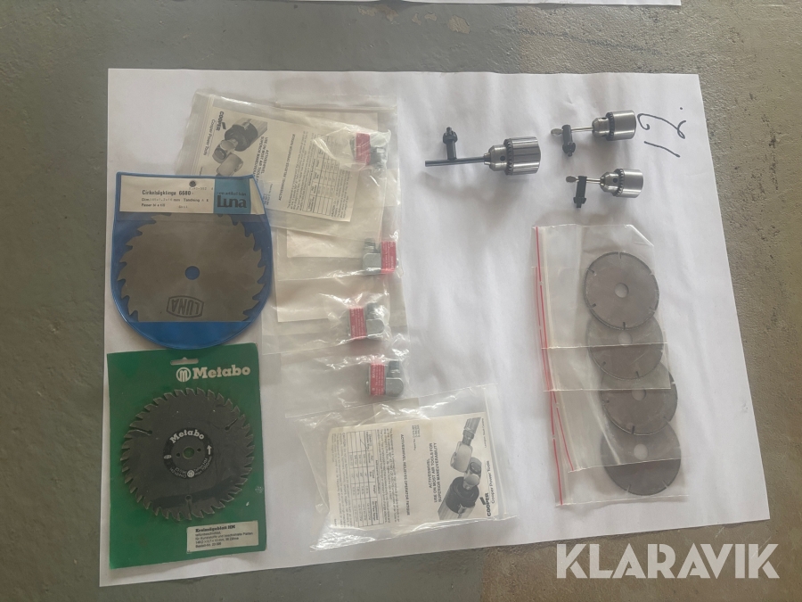 Blandade sågklingor, diamantskivor och svirvlar