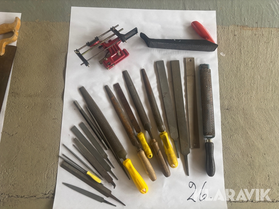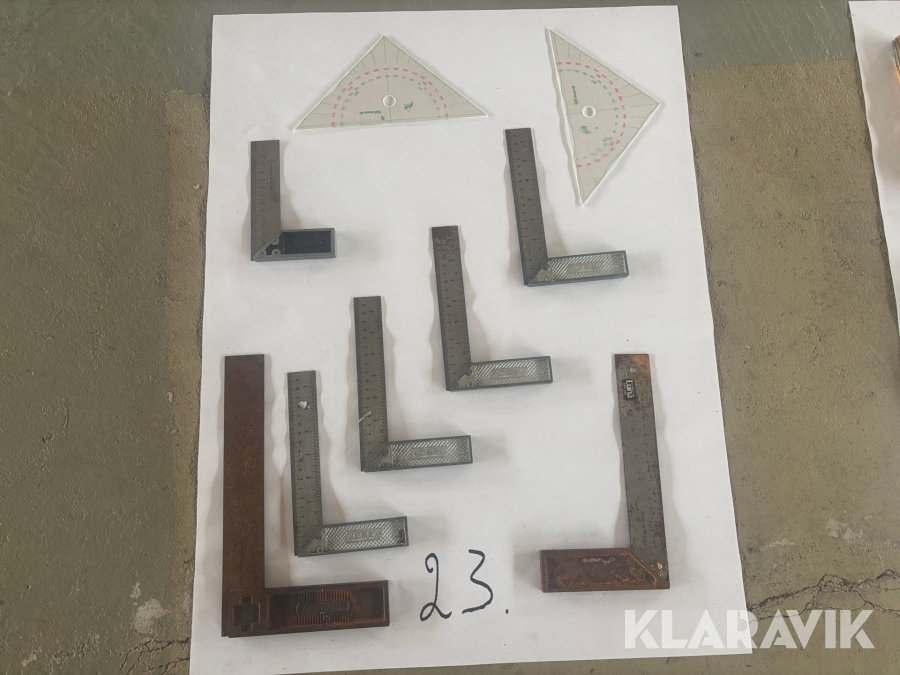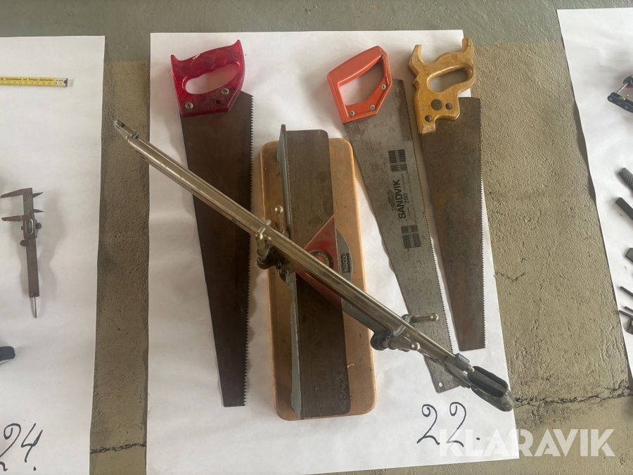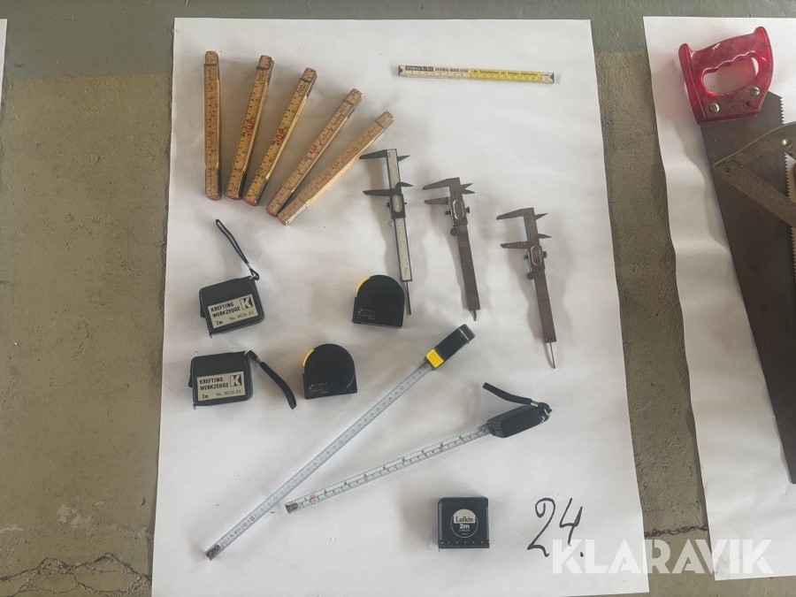 Blandat parti med sågar, mätverktyg och