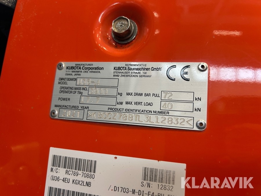 Grävmaskin Kubota U36-4 med rotator & 3 skopor