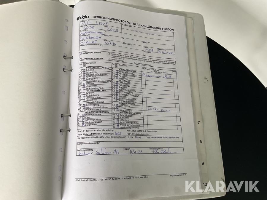 • Serie/chassinummer framgår