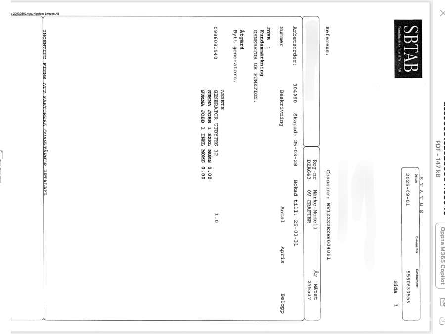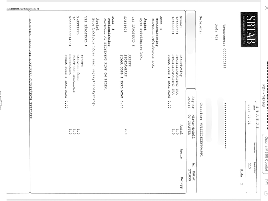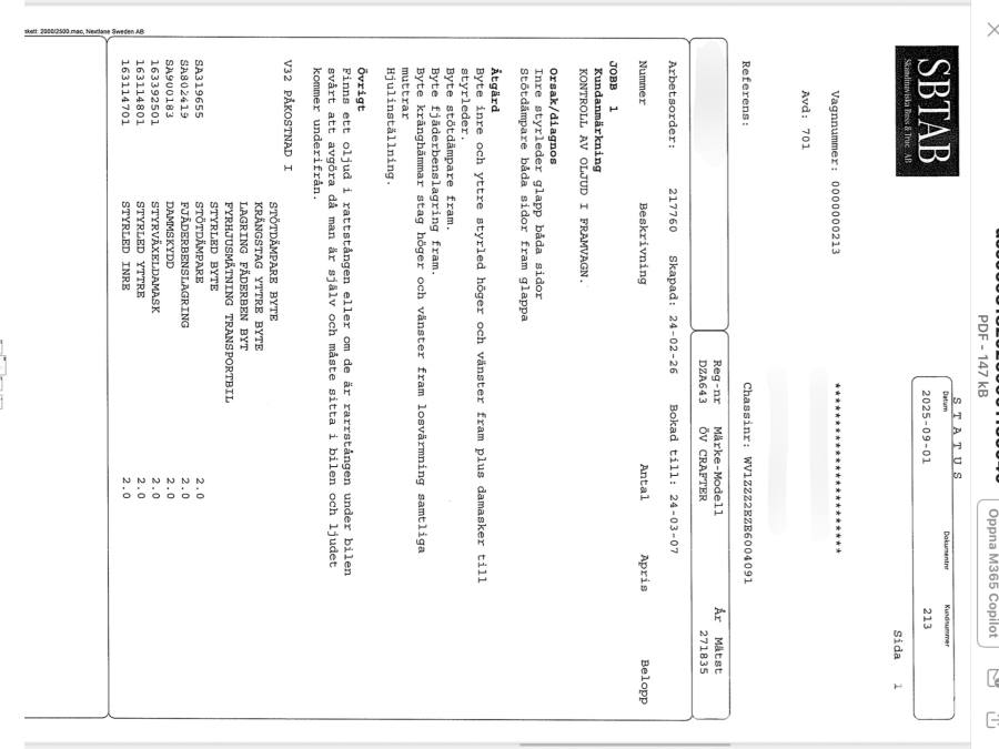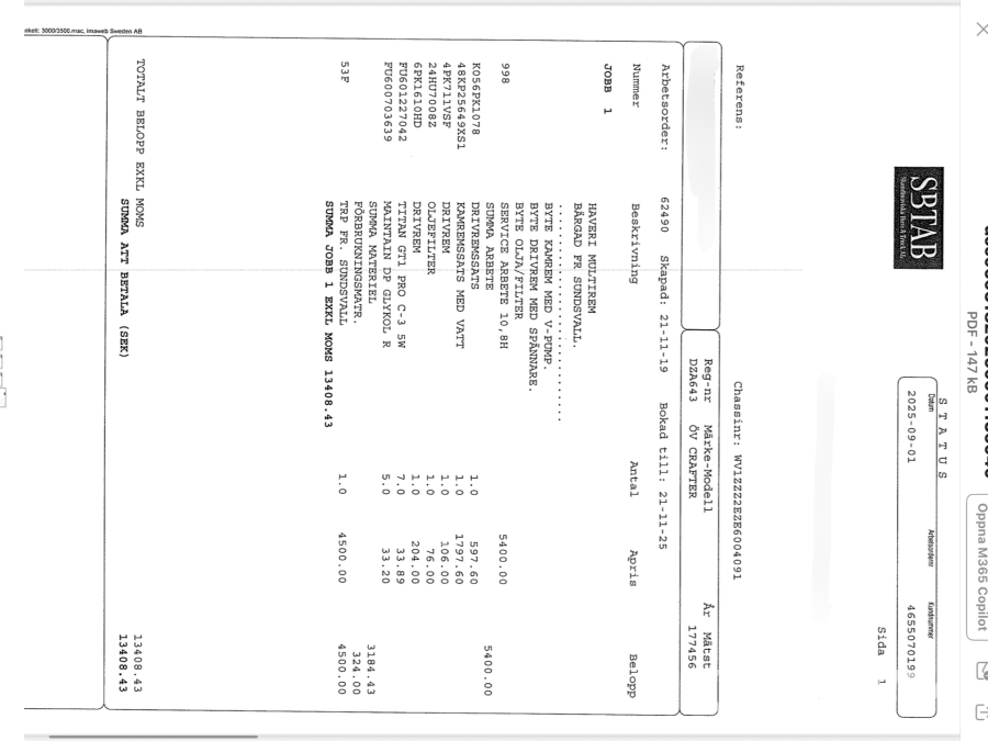 • Serie/chassinummer framgår