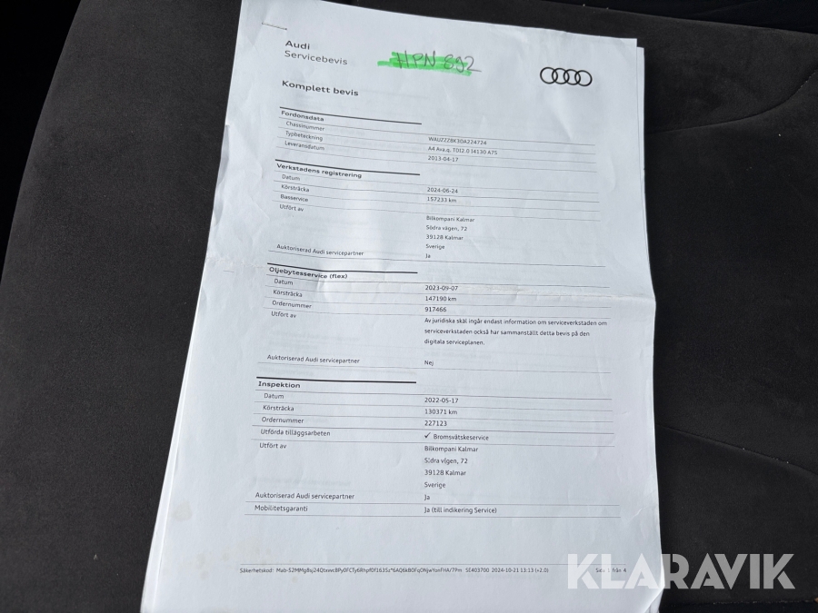 Kamrem bytt 2024/11 vid 165286km ( se bild )