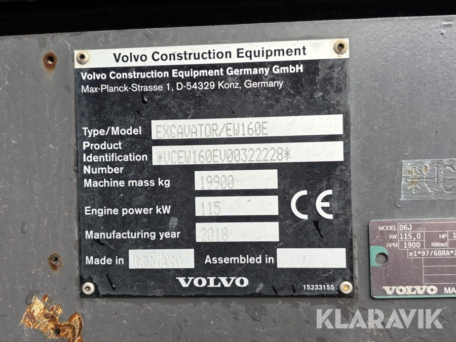 Hjulgrävare Volvo EW160E med vagn, tiltrotator & 2D