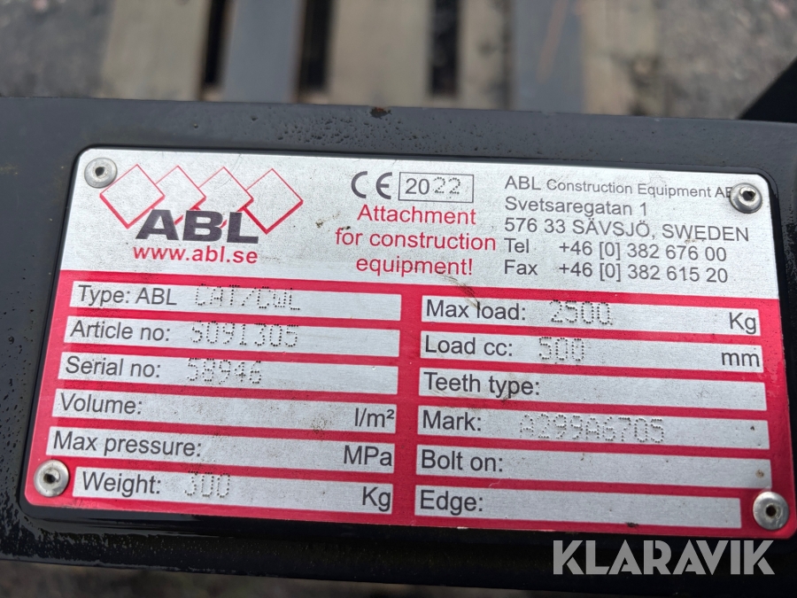 Pallgafflar 2500kg ABL CAT/CWL bobcat