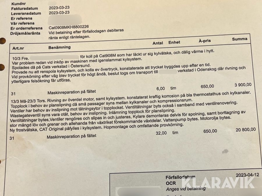 Du som köpare är skyldig att kontrollera objektet vid hämtning. Skiljer sig något avsevärt jämfört med informationen på klaravik.se? Kontakta då Klaravik innan du tar objektet från platsen. Läs fullständiga köpvillkor.