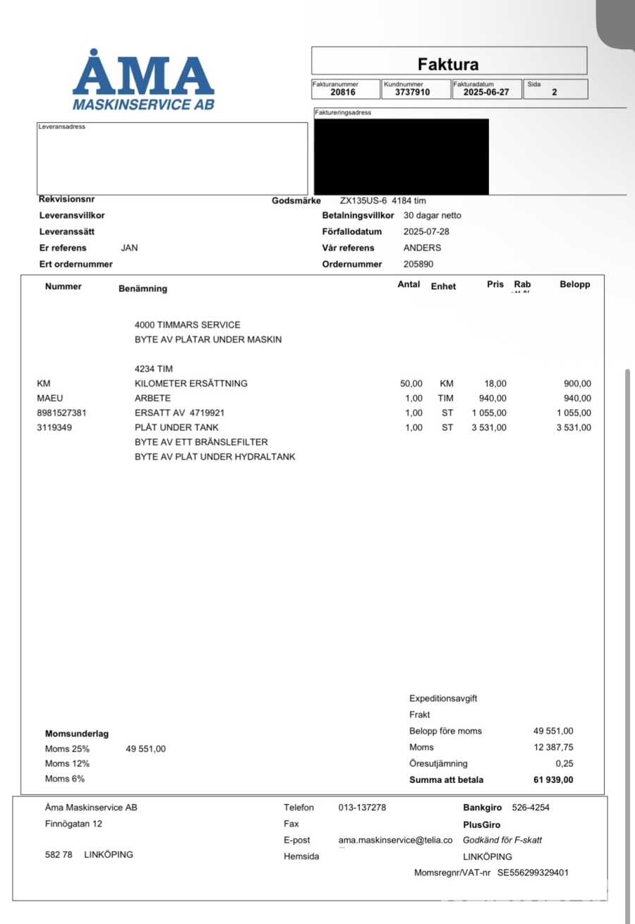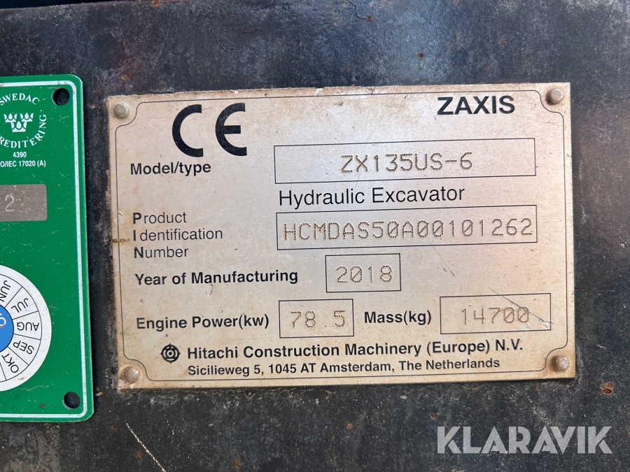 Grävmaskin Hitachi ZX135US-6