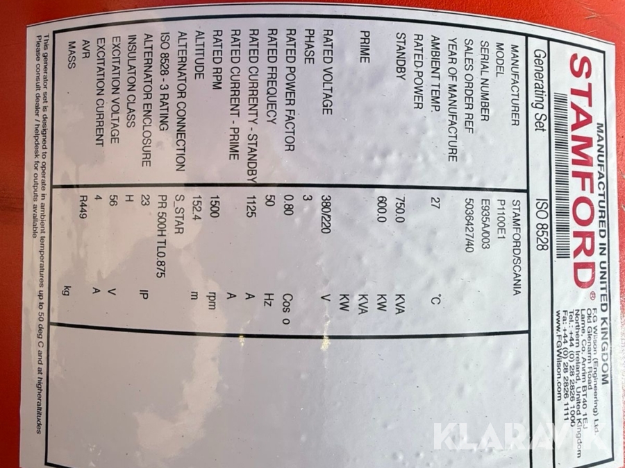 Generator Scania 750 kVA