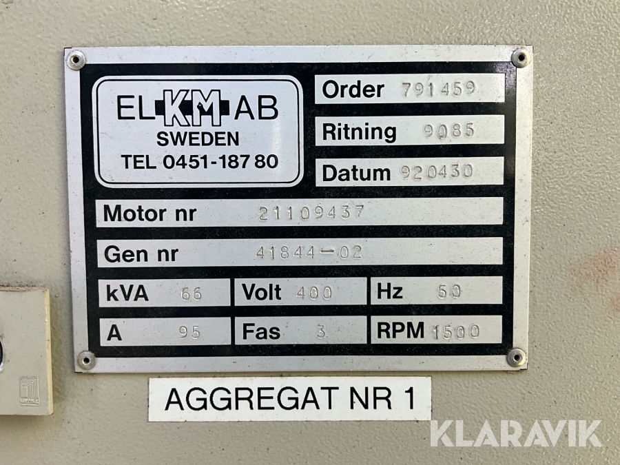 Generator / reservkraftverk EL kM 66 kVA