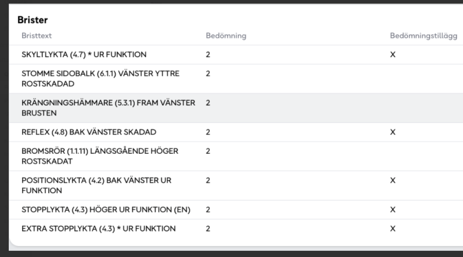 • Serie/chassinummer framgår