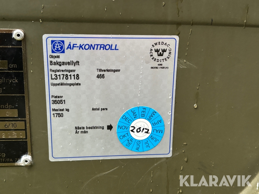 • Serie/chassinummer framgår