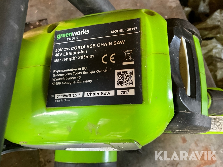Batteridriven motorsåg Greenworks Tools 20117 40V