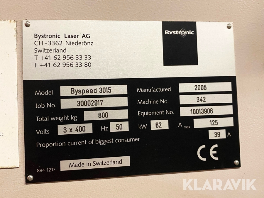 Lasermaskin / laserskärare Bystronic Byspeed 3015