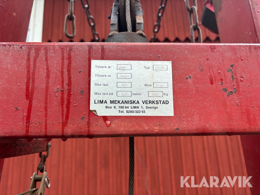 Skogskran Lima 2200H wirekran 3-punkt.