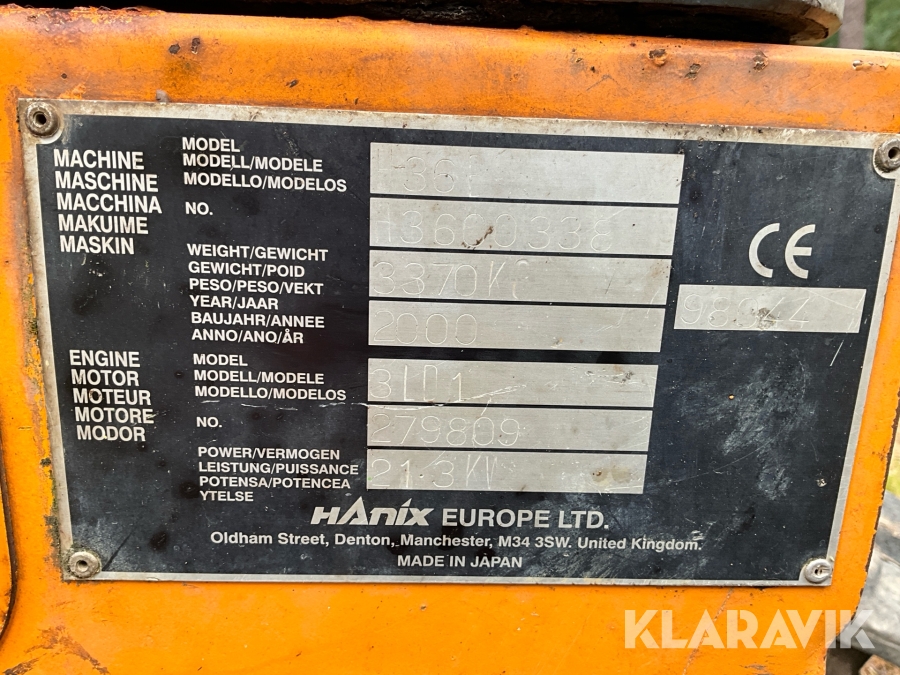 Grävmaskin Hanix H36B med skopor och rotor