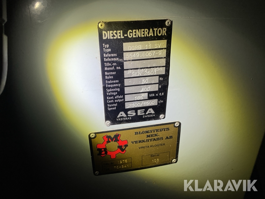 Elverk 200kVA Asea Scania 110 i container