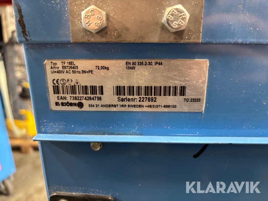Boka frakt? Det finns ingen specifik information om frakt för just det här objektet, men om du skickar oss en förfrågan via vårt fraktformulär, så undersöker vi möjligheten. Paket, EU-pall eller större maskin? Klaravik har fraktavtal med Schenker och i de fall vi kan hjälpa till med frakt gäller det objekt som ryms i paket eller inom en EU-pall (upp till 120*80 cm och 990 kg). Det går att beställa frakt inom Sverige, dock inte till utlandet. Vid frakt på större maskiner rekommenderar vi gärna transportföretag som du kan kontakta.