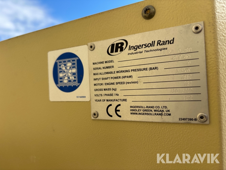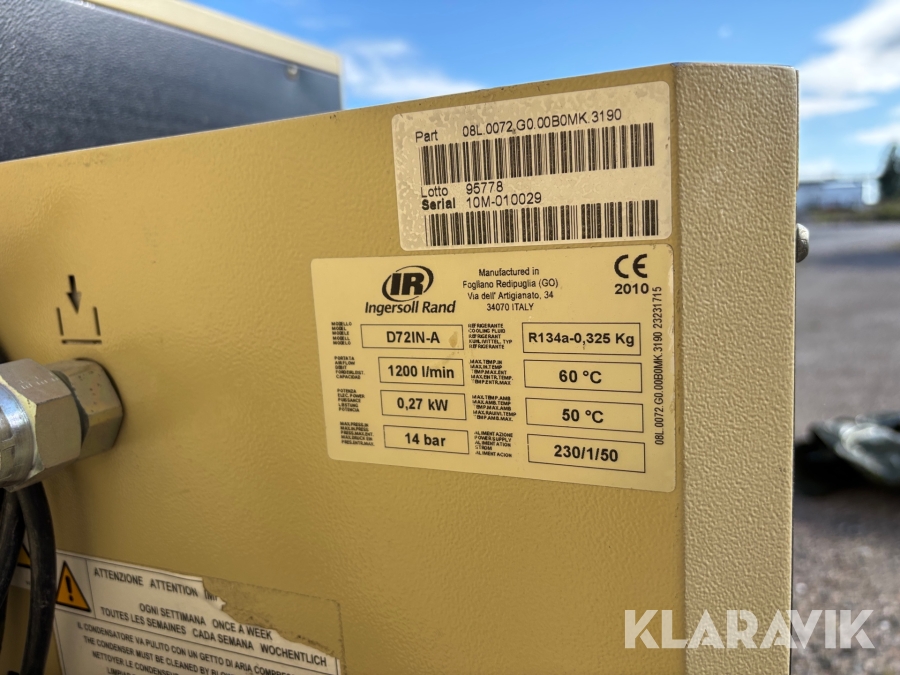 Skruvkompressor Ingersoll Rand R5IU DS-D med frystork & tillhörande sandbläster