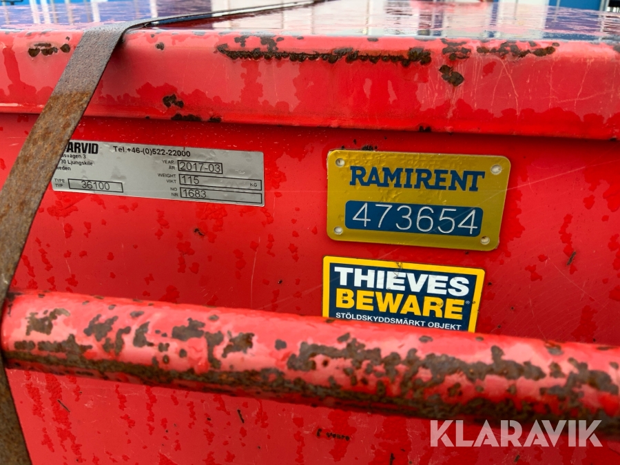 Pga platsbrist är det viktigt att du som köpare hämtar inom 12 dagar från auktionsavslut. Vid frågor om frakt kontakta trade@ramirent.se.