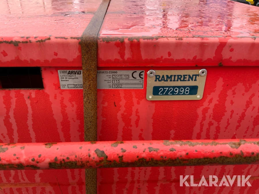 Pga platsbrist är det viktigt att du som köpare hämtar inom 12 dagar från auktionsavslut. Vid frågor om frakt kontakta trade@ramirent.se.