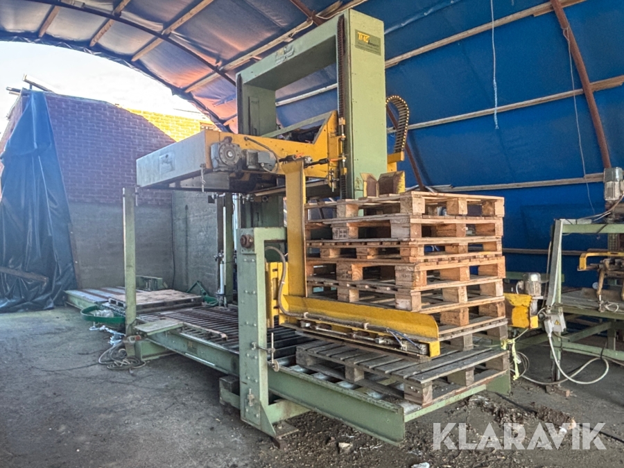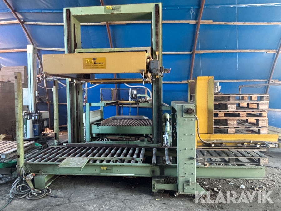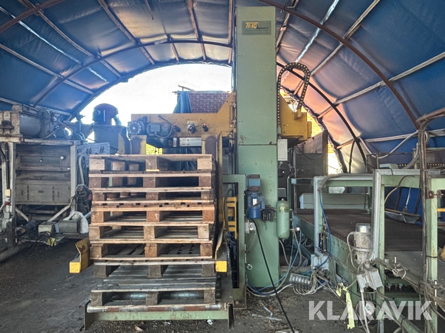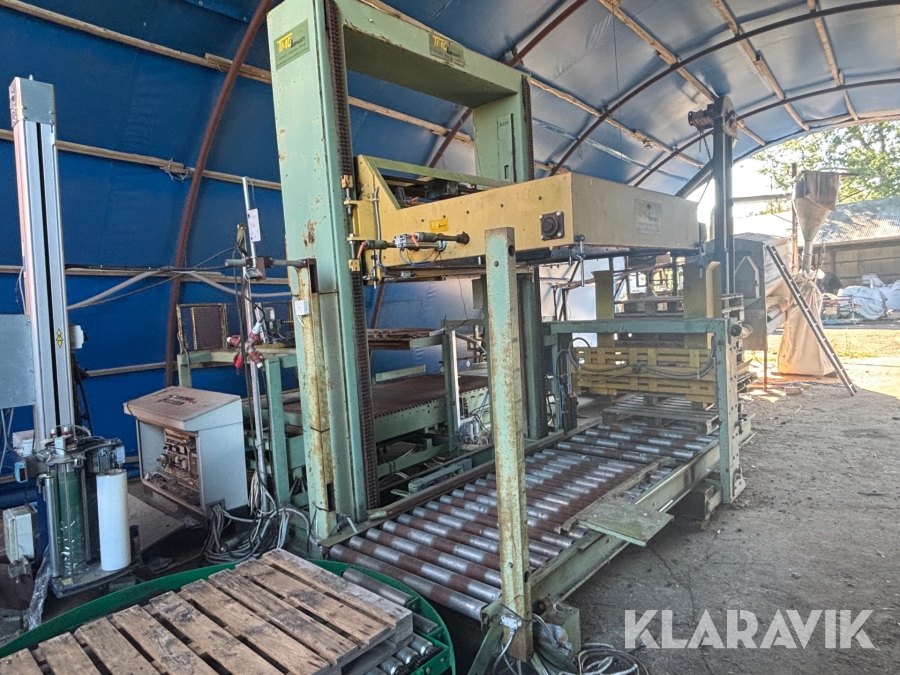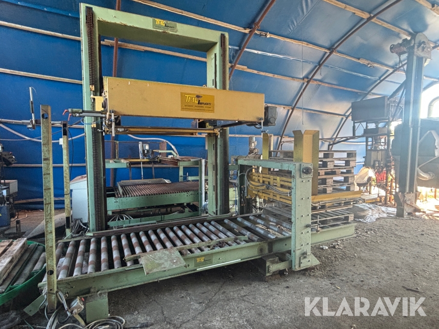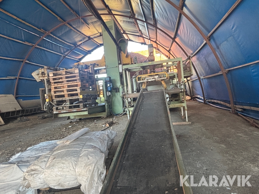 Paketeringsanläggning TMG SIRIO 1 S 80 - Med transportband / rullband, telfer / säckfixeringsmaskin och pallastare